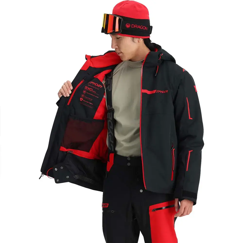 Куртка оснащена молниями YKK спереди и на карманах для рук, эластичными манжетами на запястьях и подоле, а также изящной матовой веб-графикой на рукавах.