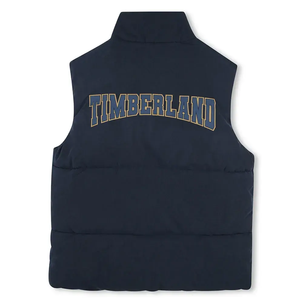 Эта безрукавка-пуховик Timberland выполнена в ретро-стиле благодаря крупному контрастному логотипу, напечатанному на спине.