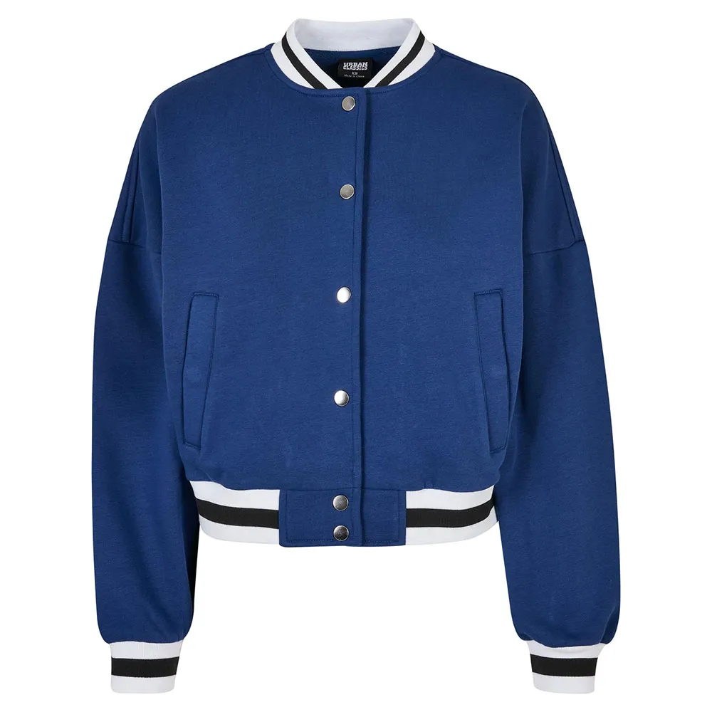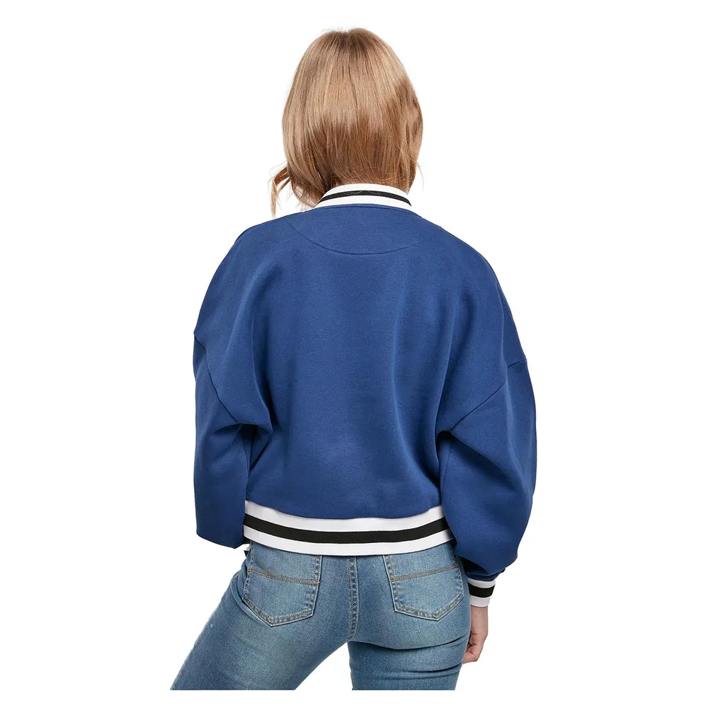 Женская куртка в стиле колледжа имеет короткий свободный крой и полностью раскрывает свой стильный потенциал. Воротник, манжеты и подол выполнены в полоску и резинку, что соответствует типу фигуры. Женская куртка застегивается на кнопку, а боковые карманы идеально дополняют ее. Куртка изготовлена из мягкого трикотажного материала на основе хлопка и полиэстера.