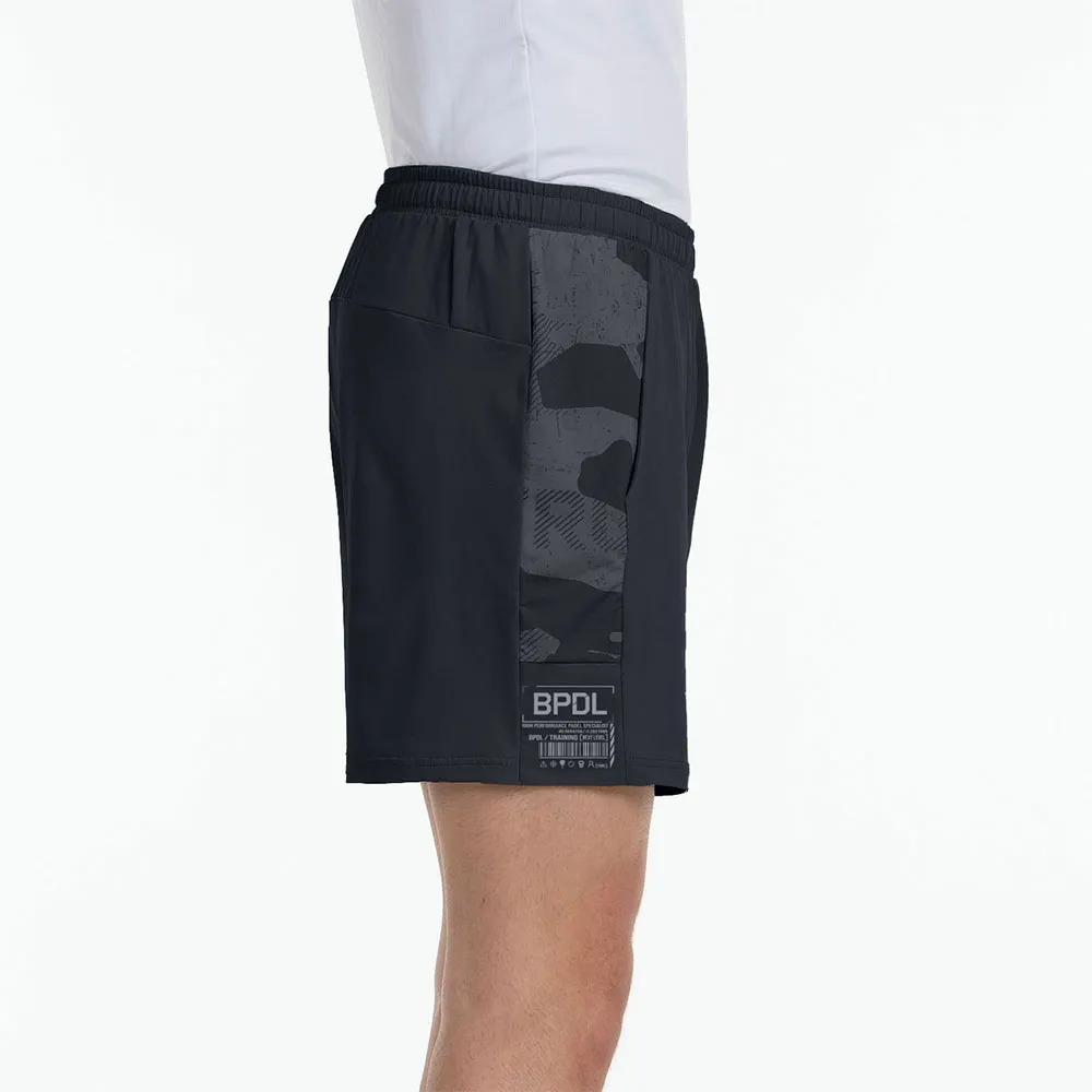 Бермуды длиной 42 см с эластичным поясом и регулируемой кулиской, боковыми карманами на третьей молнии и бретельками. По бокам – сублимированная полоска, а также паз для полотенца или футболки. – Изготовлены из однослойного эластичного полиэстерового трикотажа. – Применена технология Drynamic, которая использует микроволокна для снижения влажности и потоотделения.