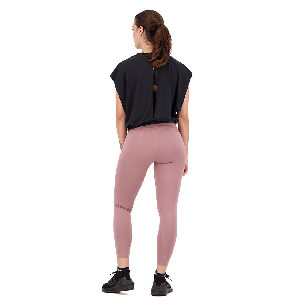 Эти леггинсы, похожие на колготки, изготовлены из переработанного полиэстера (64%) и эластана (36%), что обеспечивает отличную износостойкость, эластичность, впитывание влаги, лёгкость и быстрое высыхание. Технология Aeroready контролирует потоотделение и сохраняет сухость. Эти леггинсы имеют эластичный пояс с высокой посадкой, которая обеспечивает поддержку поясницы и всегда остается на месте, а также разрез выше щиколотки.