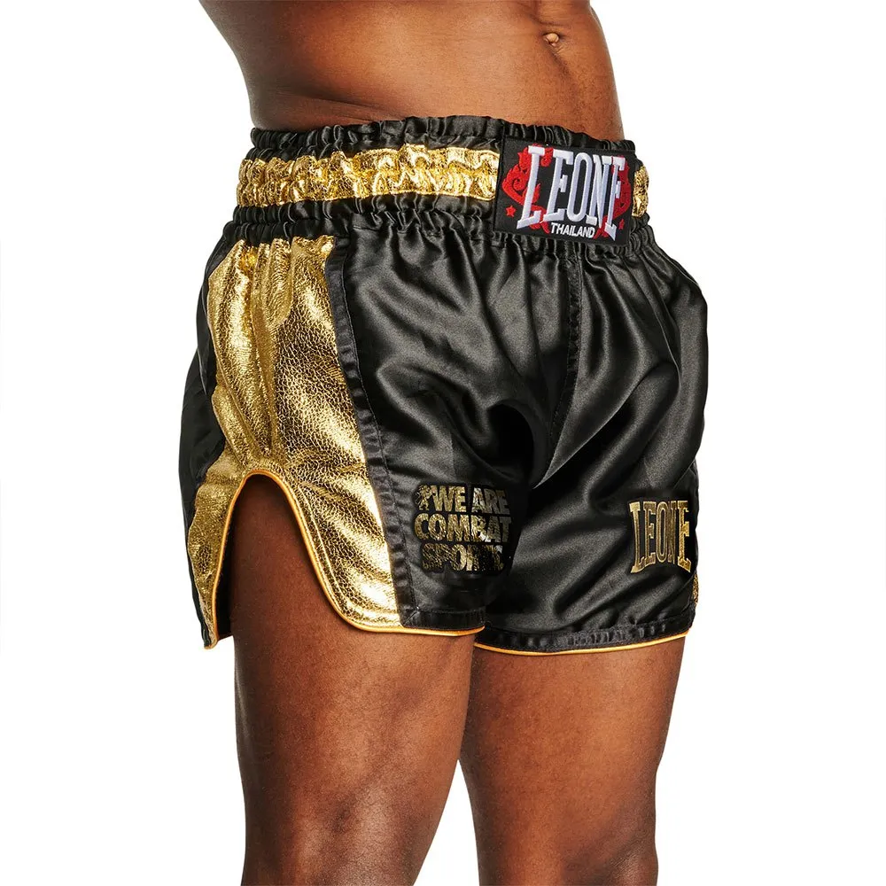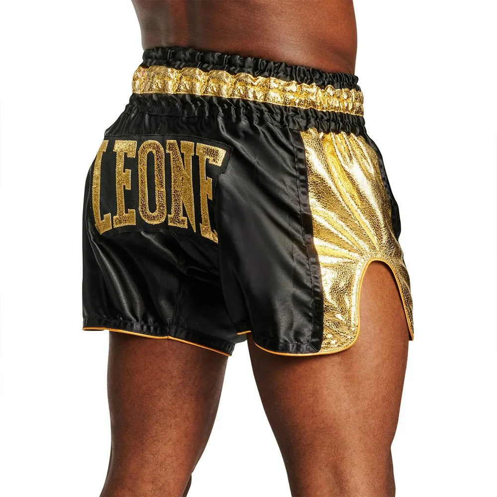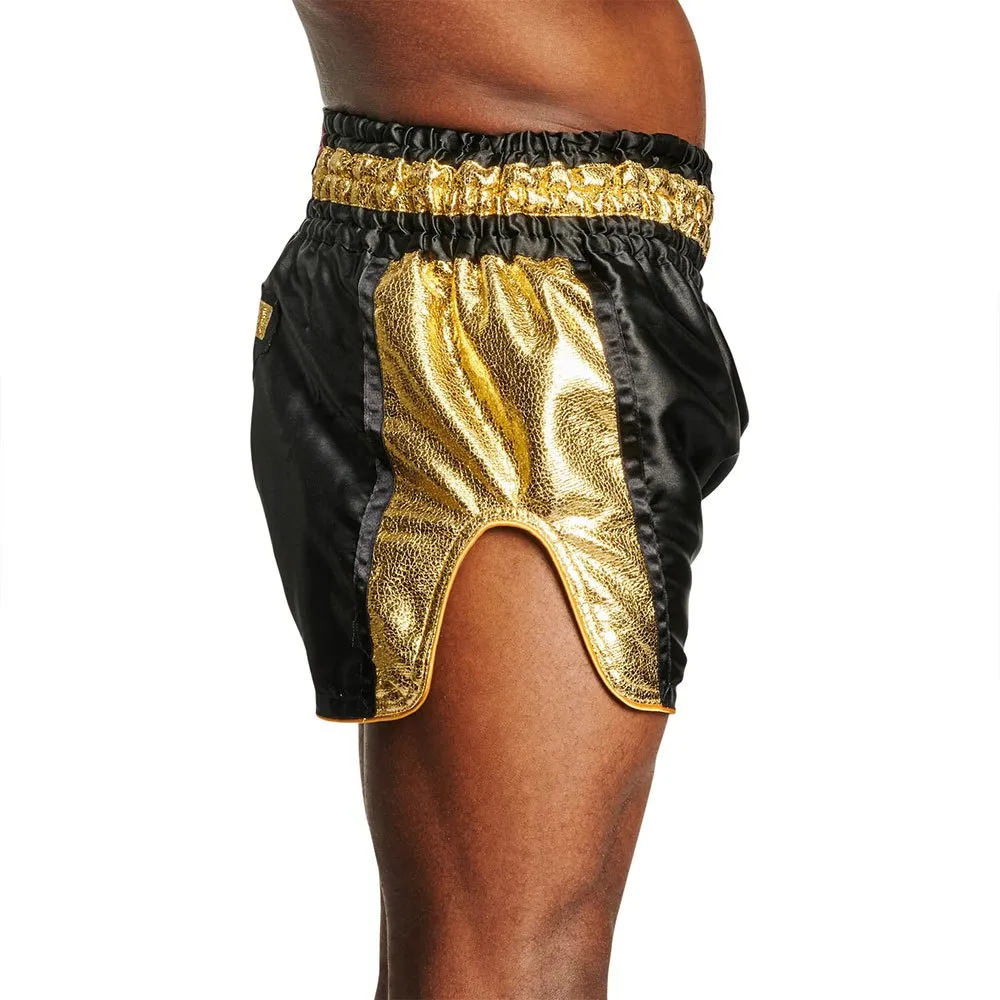 Шорты Made In Thai Kick. Драгоценная золотая отделка освещает тёмные шорты, заставляя их сиять.