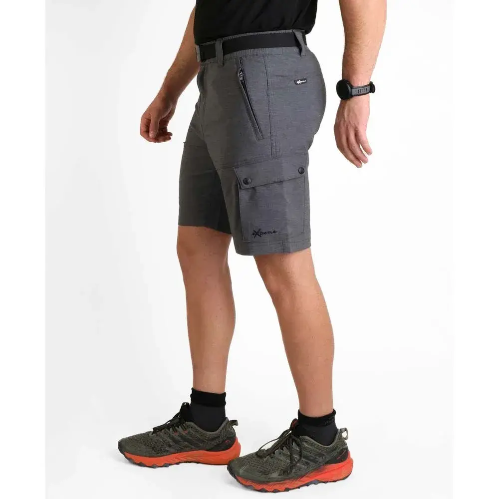 Полуэластичный пояс с застежкой на две кнопки, регулируемый эластичный пояс, четыре кармана (передние карманы со скрытыми молниями и боковые карманы на кнопках), вышитый логотип.