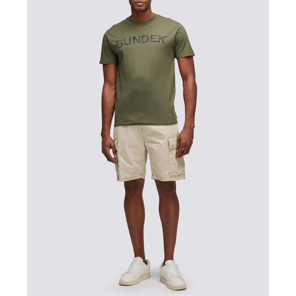 Выбирайте комфорт каждый день с этими шортами-карго из хлопка, окрашенного в готовом виде. Благодаря боковым карманам, застёжке на пуговицах и шлёвкам для ремня, они функциональны и практичны, подходят для разных случаев. Культовый нейлоновый радуга Sundek на спине добавляет стиль этим мужским шортам.
