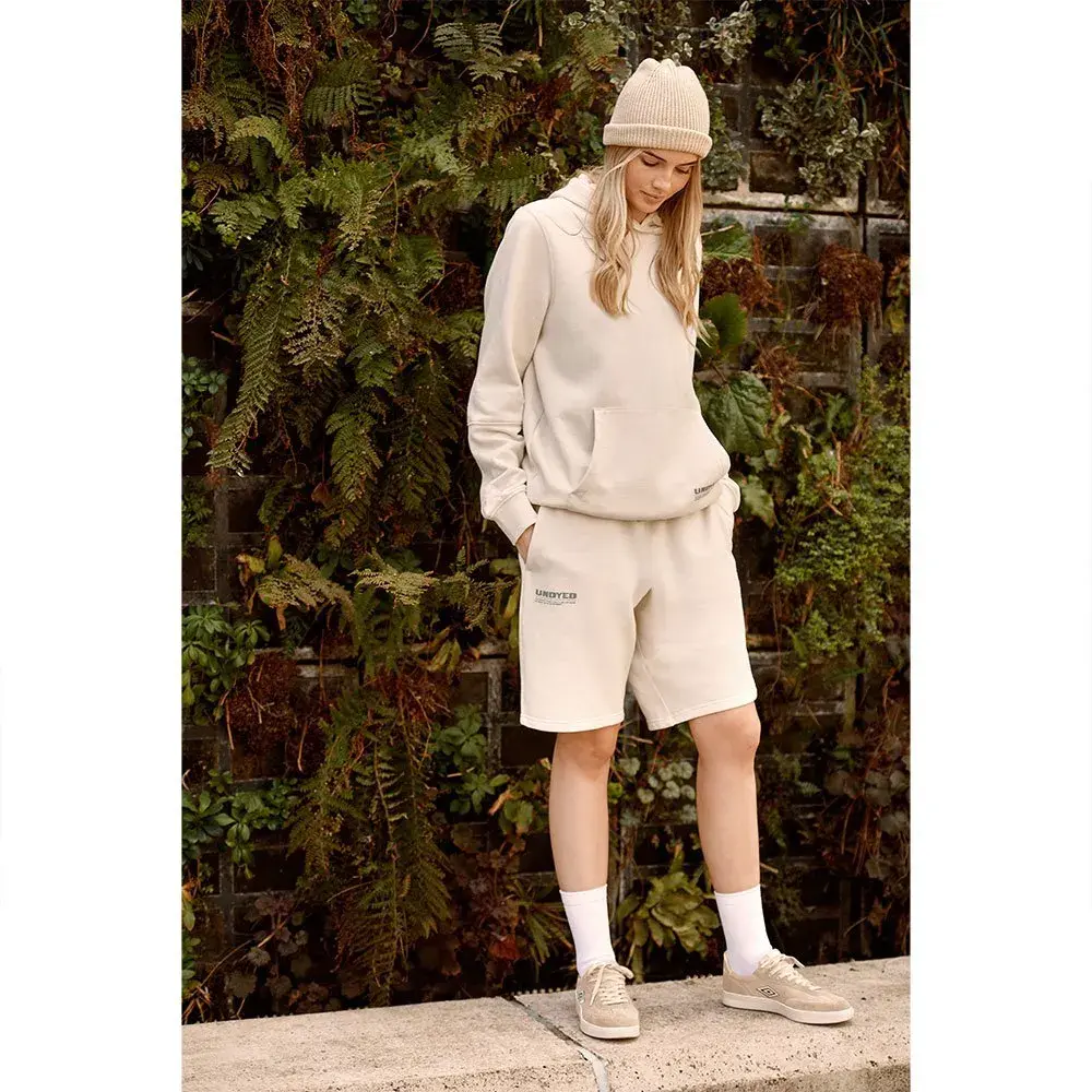 Изготовленные из смеси хлопка и переработанного флиса с петельчатой изнанкой, эти шорты обеспечивают комфорт и экологичность.