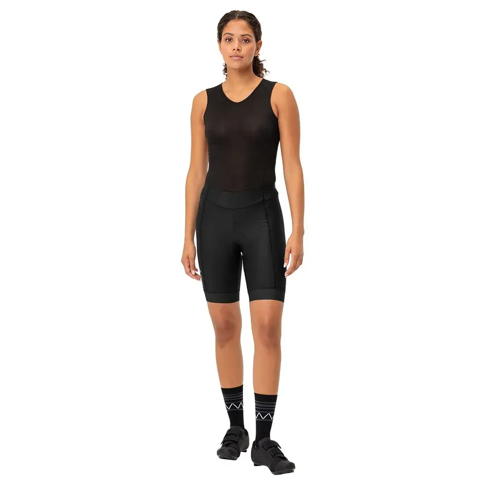 Женские классические шоссейные велоштаны с VAUDE R-Pad, оптимальные для шоссейного велоспорта, дышащие, эластичные и быстросохнущие, экологически чистые, изготовлены из переработанных материалов в Европе.