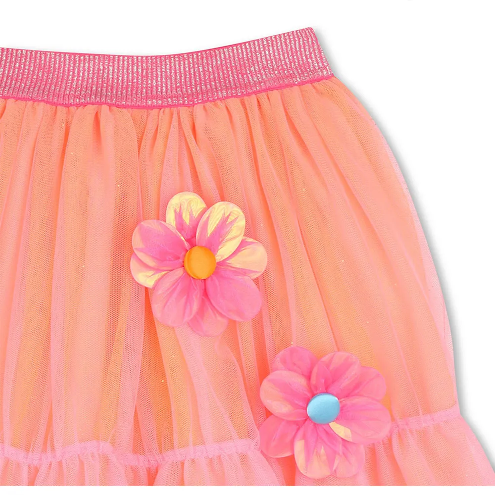 Юбка из сетки, подкладка, 3D-цветы сверху, эластичная талия, этикетка.