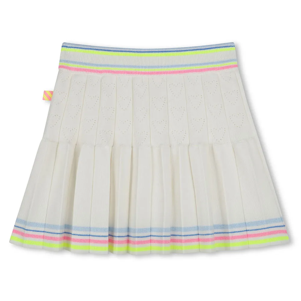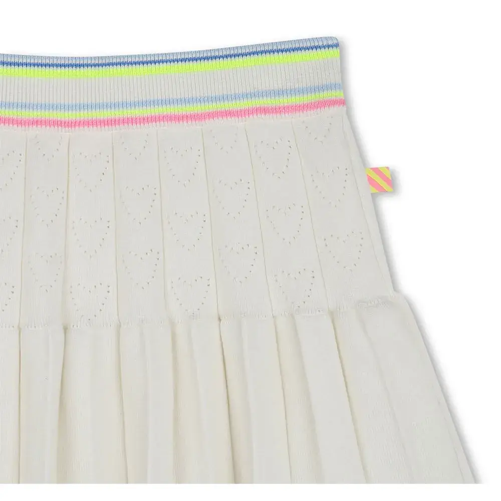 Трикотанная юбка с сердечками, открытая работа, полосатая резинка на талии, этикетка.