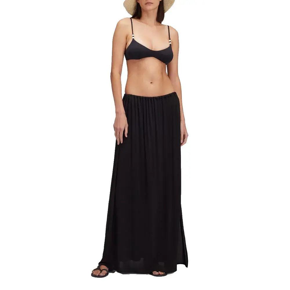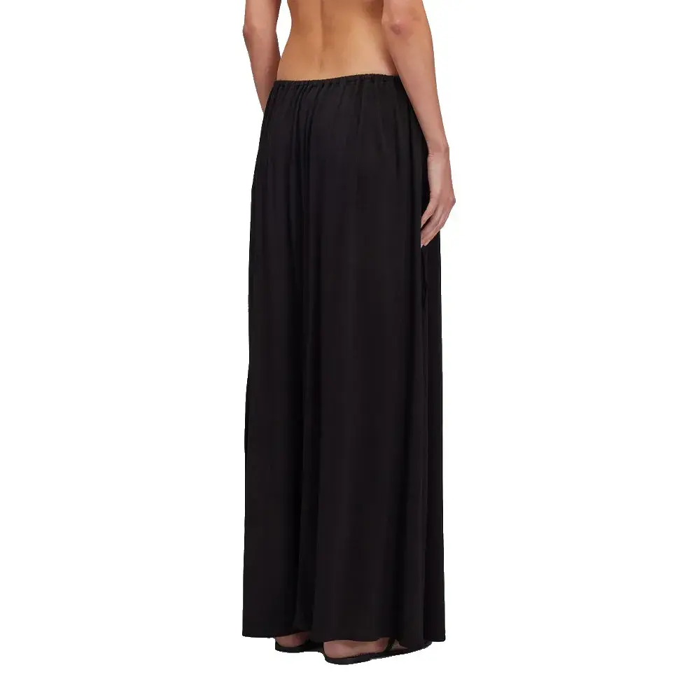 Длинная трикотажная юбка с регулируемой кулиской и свободным кроем, с разрезами по бокам.