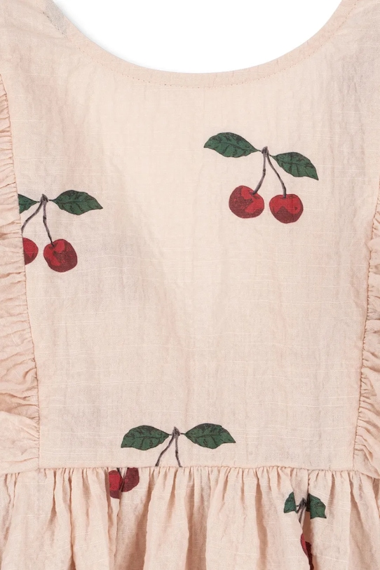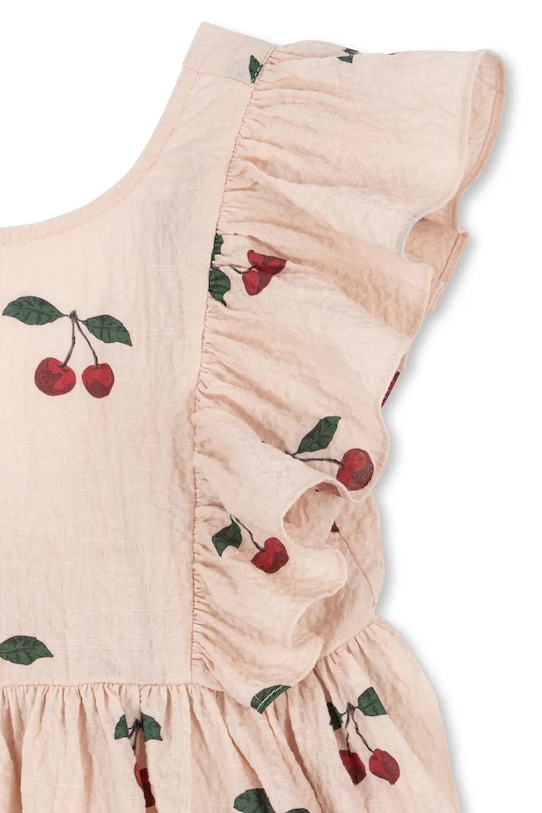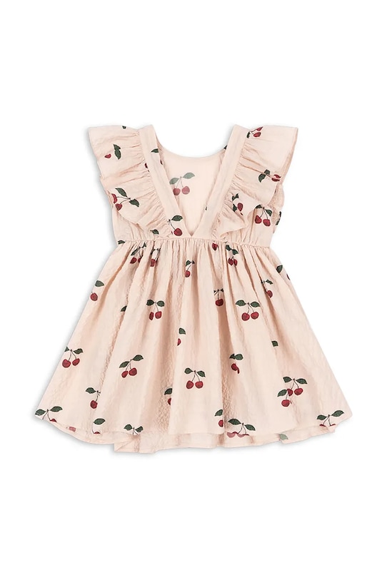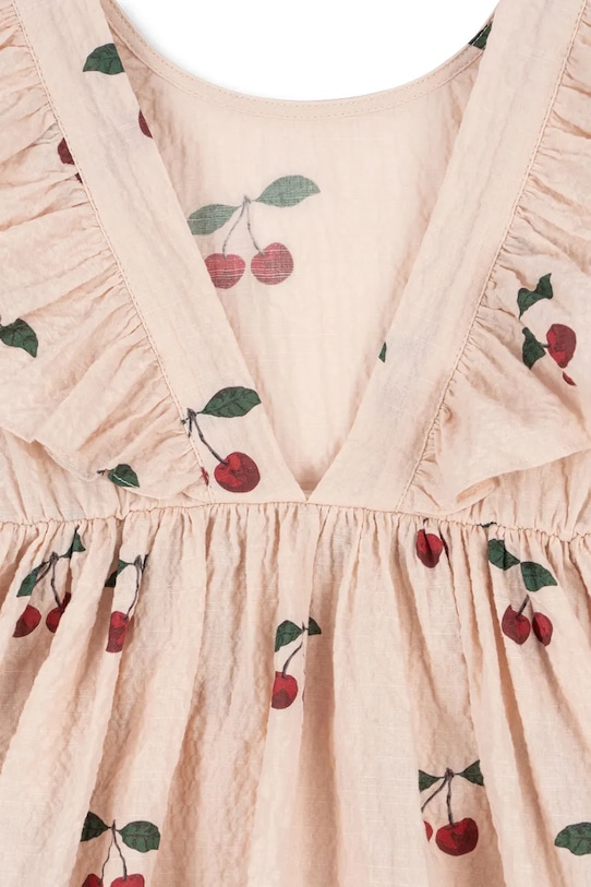 Детское платье Konges Sløjd бежевого цвета — очаровательный летний вариант, созданный с учётом повседневного комфорта и стиля. Изготовленное из мягкого органического хлопка с добавлением эластана, оно обеспечивает максимальный комфорт даже в самые тёплые дни. Узорчатый дизайн, декоративные оборки и классический круглый вырез горловины делают его идеальным выбором для прогулок, семейных посиделок и летних приключений. Платье не имеет застёжки, что позволяет быстро одеть малыша.