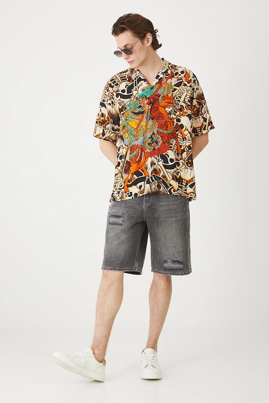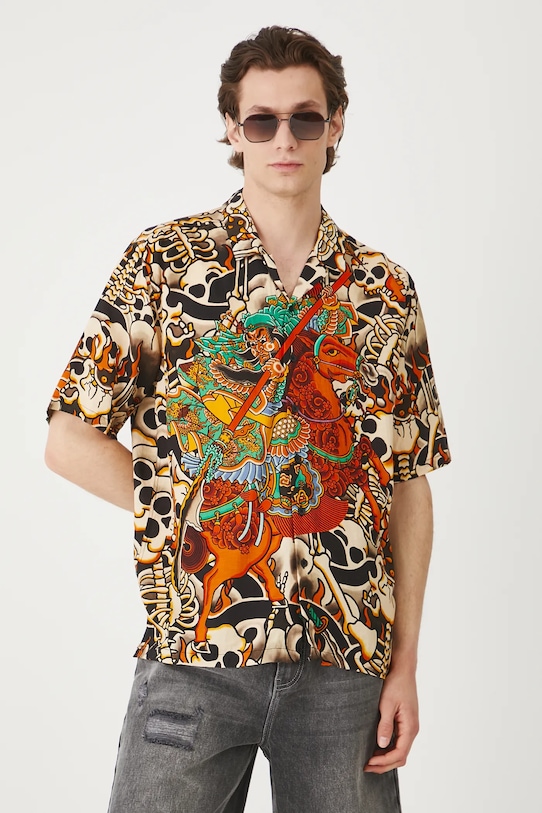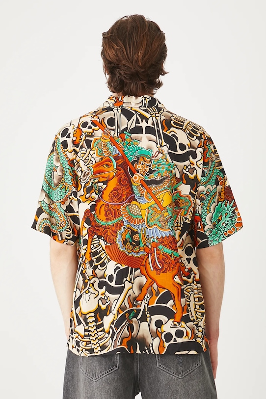 Эта рубашка из специальной коллекции Tattoo Art – Boren Huang – Horiren 彫壬 for Medicine. Она сшита из льняной ткани и имеет воротник-стойку.