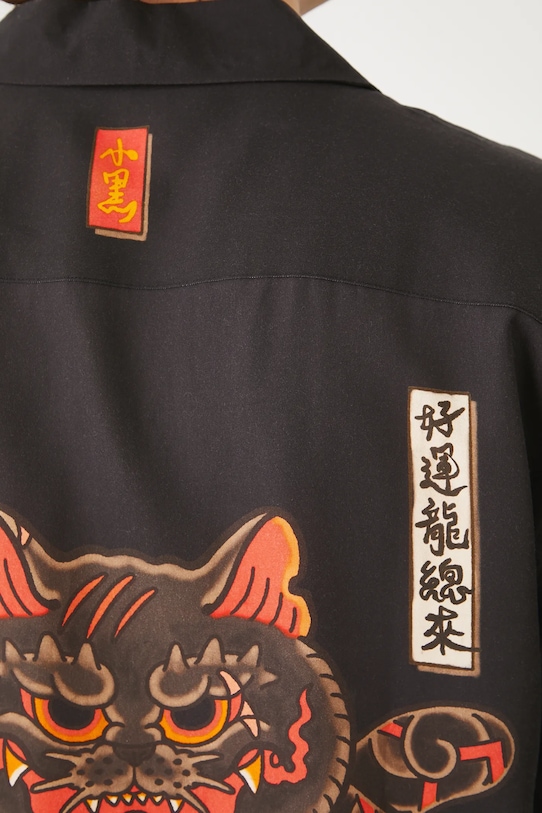 Эта рубашка из специальной коллекции Tattoo Art – Boren Huang – Horiren 彫壬 for Medicine. Она выполнена из принтованной ткани и имеет воротник-стойку.