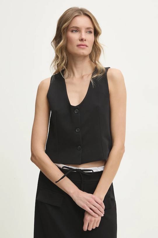 - Деловой, классический тип жилета – минималистичный, удлиненный крой без рукавов подчеркивает деловой характер модели.