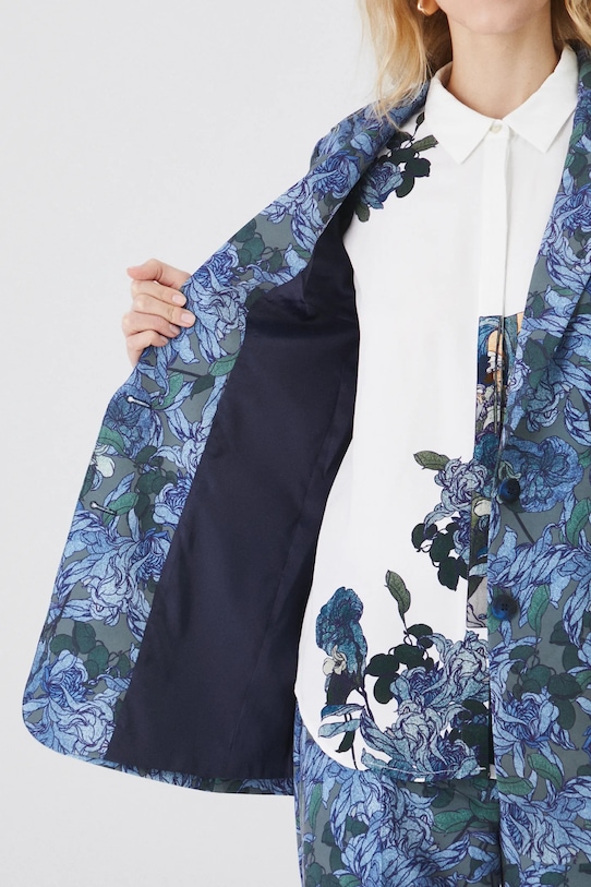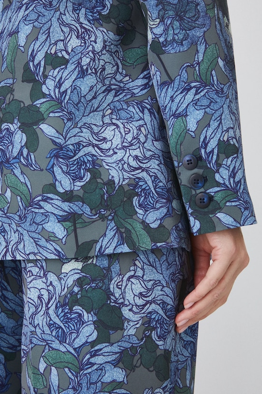 - Однобортный пиджак с застежкой на пуговицы.