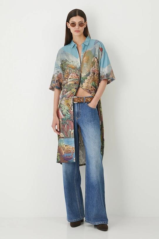 Платье из специальной коллекции «Медицина – Земля легенд». Простой крой, выполнено из узорчатой ткани.