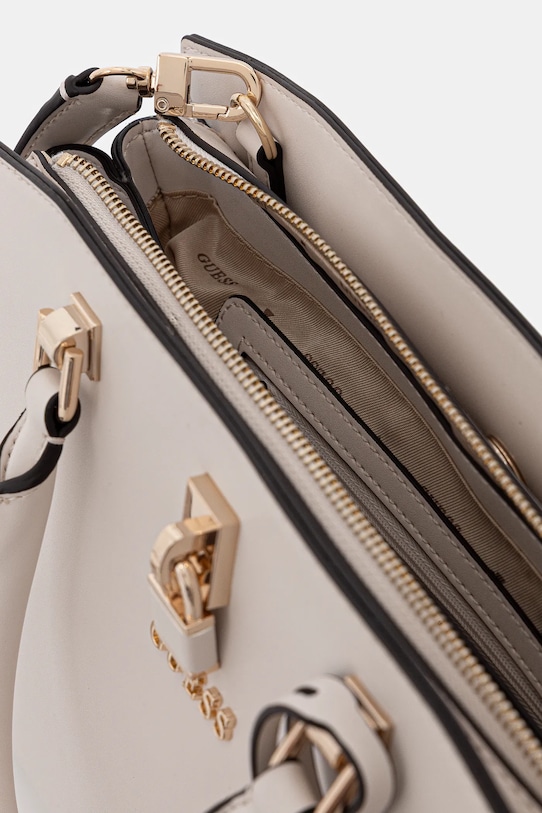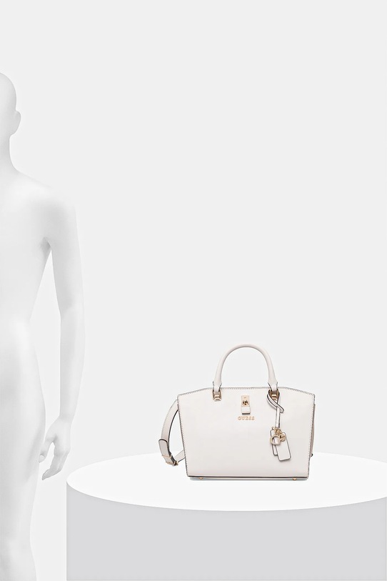 Сумка среднего размера из коллекции Guess. Модель на молнии изготовлена из искусственной кожи, которая легко чистится и ухаживается. Материал плотный и хорошо держит форму.