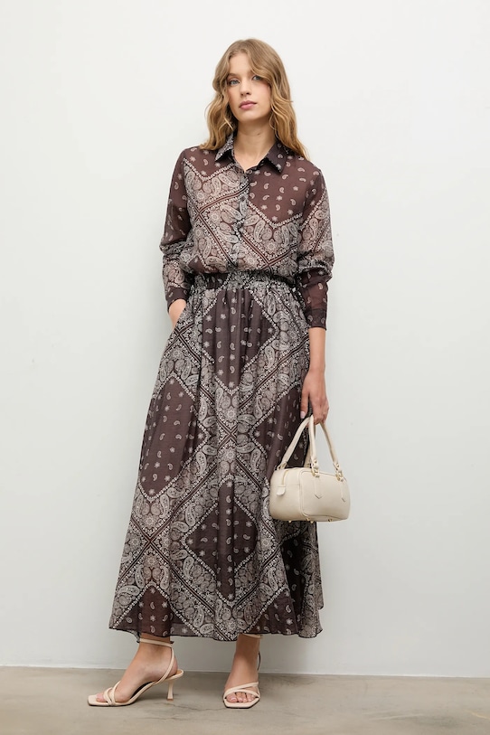 Рубашка и юбка из коллекции Answear LAB, выполненные из ткани с узором. Эта модель выполнена из исключительно комфортного, дышащего материала.