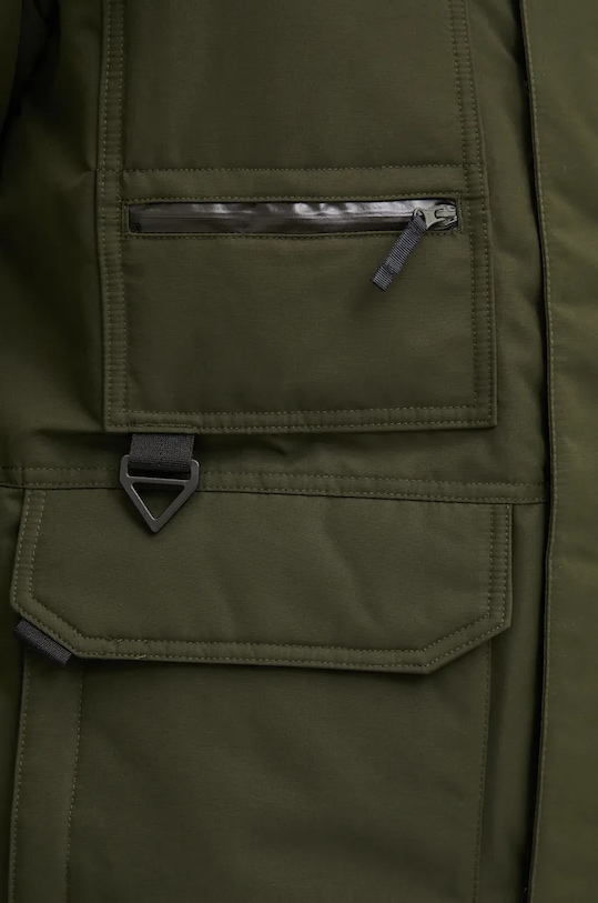 - Поднятый воротник и несъемный капюшон обеспечивают дополнительную защиту от холода.