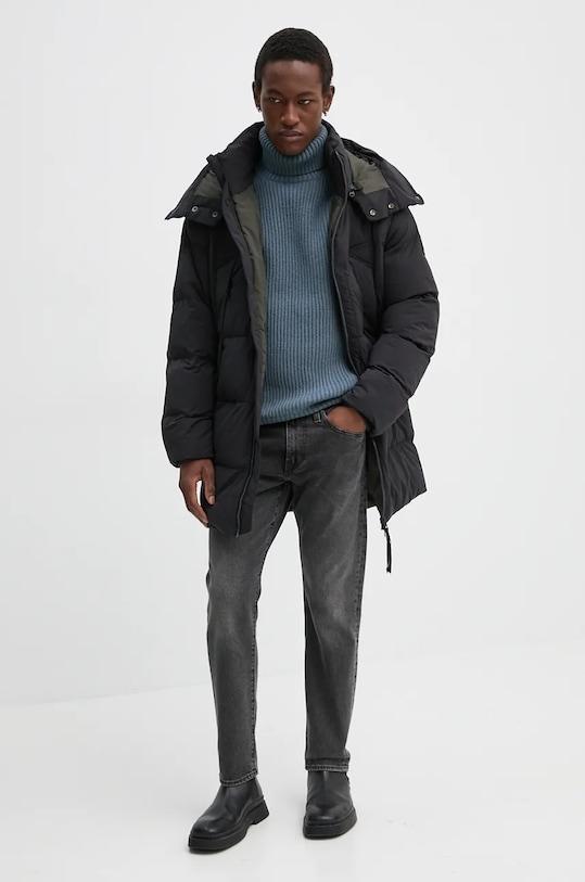 - Высокий воротник и съемный капюшон обеспечивают дополнительную защиту от холода.