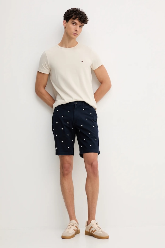Шорты из коллекции Tommy Hilfiger из тонкой эластичной ткани. Модель выполнена из исключительно комфортного, дышащего материала с высоким содержанием хлопка. Модель частично изготовлена из хлопка, полученного в результате регенеративного земледелия, что позволяет фермерам синхронизироваться с природными ритмами. Такой подход к земледелию обеспечивает более длительный отдых и восстановление растений, что приводит к лучшему питанию сельскохозяйственных животных и оздоровлению почвы. - Простой дизайн, не стесняющий движений. - Модель со стандартной талией, застежкой на молнию и пуговицы. - Прямая нога полной длины. - Два боковых накладных кармана. - Два кармана на пуговицах на ягодицах. - Модель с декоративной вышивкой. - Ширина талии: 41 см. - Ширина бедер: 53 см. - Высота талии: 26 см. - Ширина штанины внизу: 26 см. - Ширина штанины: 31 см. - Длина внешней части штанины: 46 см. - Размеры указаны для размера: 31.
