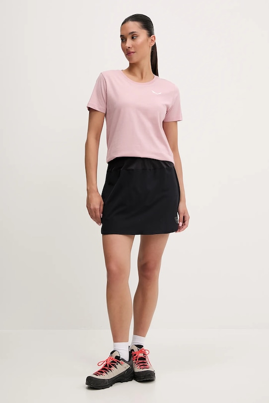 Спортивная футболка из коллекции Salewa. Изготовлена из дышащего материала. - Воздухопроницаемые свойства материала способствуют правильной циркуляции воздуха и оптимизируют тепловой комфорт во время активности. - Продукция, произведенная в соответствии с принципами Fair Wear Foundation, организации брендов одежды, которые создают продукцию более экологичным и этичным образом. Продукция с маркировкой Fair Wear производится на фабриках, успешно прошедших внешний аудит и обеспечивающих сотрудникам достойные условия труда и оплату труда. - Модель входит в линейку продукции Salewa Commited, которая изготавливается в ходе ответственного производственного процесса, сводящего к минимуму негативное воздействие на окружающую среду. - Простой дизайн, не стесняющий движений. - Классический круглый вырез. - Модель с принтом на спине. - Тонкий, эластичный трикотаж. - Длина: 60 см. - Ширина под мышками: 49 см. - Размеры указаны для размера: S.