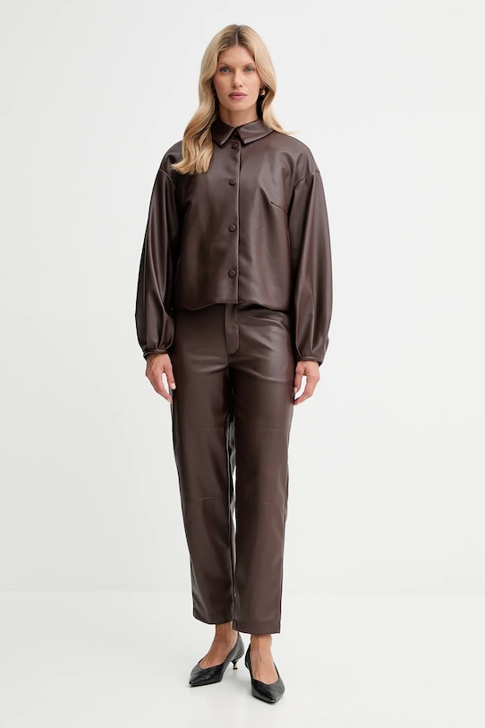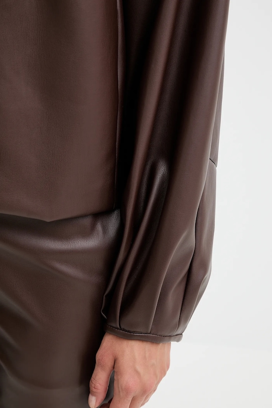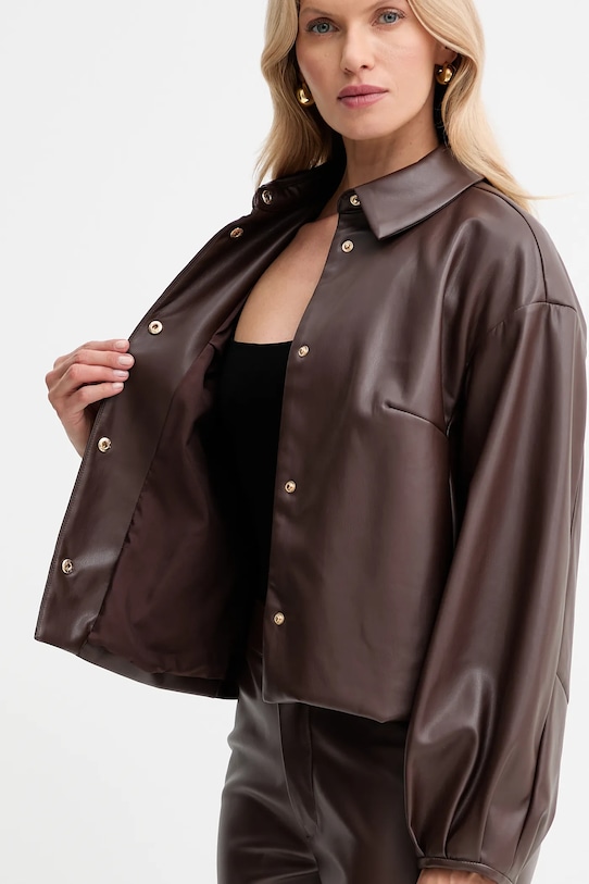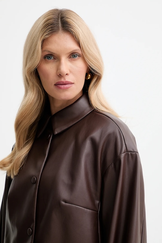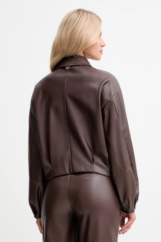 Куртка из коллекции Twinset. Эта модель без подкладки выполнена из искусственной кожи. Материал не мнется. - Свободный крой, обеспечивающий полную свободу движений. - Дополнительный слой материала в виде подкладки увеличивает покрытие и обеспечивает дополнительный комфорт во время активности. - Модель с мягким воротником. - Крой рукава со спущенной линией плеча не ограничивает подвижность. - Длинные, пышные рукава. - Застежка-кнопка по всей длине обеспечивает легкую и эффективную вентиляцию. - Два боковых накладных кармана. - Тонкая, гибкая ткань. - Длина рукава (от воротника): 74 см. - Длина: 56 см. - Ширина под мышками: 55 см. - Размеры указаны для размера: 36.