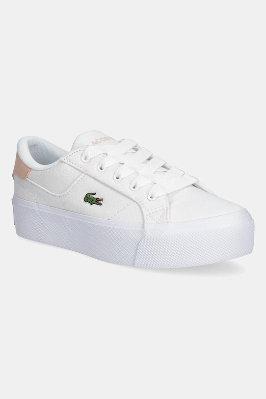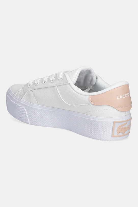Эти кроссовки из коллекции Lacoste изготовлены из текстиля. Лёгкие и удобные, они идеально подходят для повседневной носки. - Стелька из пеноматериала специальной формы с системой OrthoLite Eco отличается исключительной мягкостью и гибкостью, адаптируется к форме стопы, дольше сохраняет свою первоначальную толщину и обеспечивает отличную амортизацию. Она обеспечивает оптимальную воздухопроницаемость и обладает высокими антибактериальными свойствами, предотвращая рост бактерий, грибков и появление неприятных запахов. Стелька частично изготовлена из биомасла и переработанной резины. - Слегка затвердевший нос. - Усиленный задник обеспечивает отличную поддержку лодыжки и пятки. - Классическая шнуровка позволяет индивидуально подогнать обувь по ноге. - Текстильная внутренняя часть комфортна для ног и облегчает содержание обуви в чистоте. - Резиновая подошва прочная и устойчивая к повреждениям. - Платформенная модель.