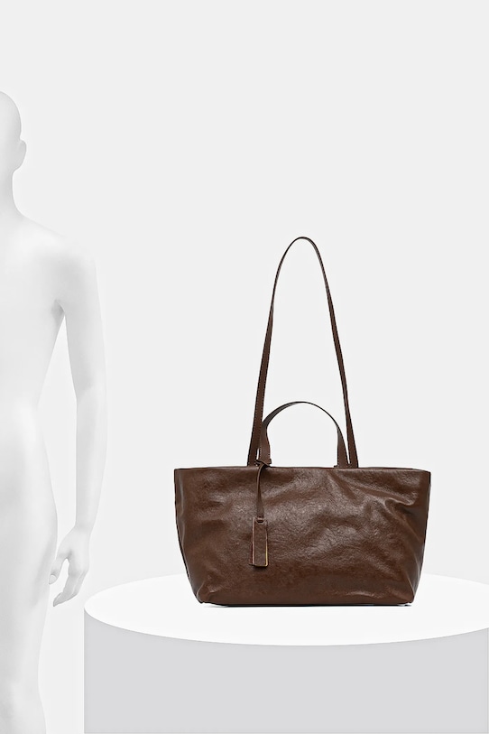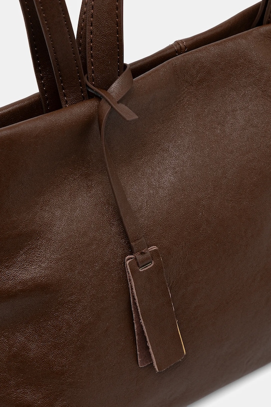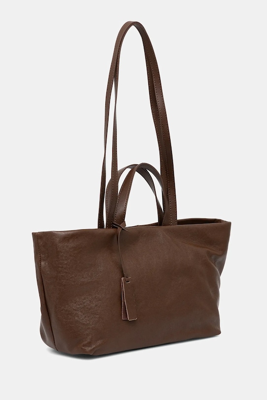 Сумка среднего размера из коллекции Answear.LAB. Модель выполнена из натуральной кожи, застёгивается на молнию. В комплект входит тканевый пыльник для защиты сумки от пыли. - В комплект модели входит брелок. - Отделение застегивается на магнит. - Имеет три отделения, одно из которых застегивается на молнию. - Дополнительные внутренние карманы позволяют безопасно хранить мелкие предметы. - Усиленное дно сумки позволяет изделию долго сохранять форму. - Модель оснащена металлическими ножками, защищающими дно сумки. - Сумка для ношения в руке или на плече. - Длинные и короткие ручки. - Не подходит для формата А4. - Модель на подкладке. - Количество отделений на молнии: 1. - Количество расстегивающихся отделений: 2. - Количество внутренних карманов на молнии: 1. - Количество внутренних накладных карманов: 1. - Глубина: 14 см. - Высота: 21 см. - Ширина у основания: 32 см.