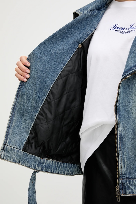 Эта куртка из коллекции Guess Originals без подкладки сшита из потертого денима. Она выполнена из исключительно комфортной, дышащей хлопковой ткани. - Свободный крой, обеспечивающий полную свободу движений. - Легкая утепленная модель с синтетическим наполнителем. - Дополнительный слой материала в виде подкладки увеличивает покрытие и обеспечивает дополнительный комфорт во время активности. - Модель с мягким воротником. - Крой рукава со спущенной линией плеча не ограничивает подвижность. - Молнии по низу рукавов позволяют легко надевать и снимать. - Два прорезных боковых кармана на молнии. - Нагрудный карман на молнии для удобного хранения мелких предметов. - Застежка-молния и кнопки обеспечивают легкую и эффективную вентиляцию. - Текстильный ремешок в комплекте. - Длина рукава (от воротника): 74 см. - Длина: 65 см. - Ширина под мышками: 58 см. - Размеры указаны для размера: S.