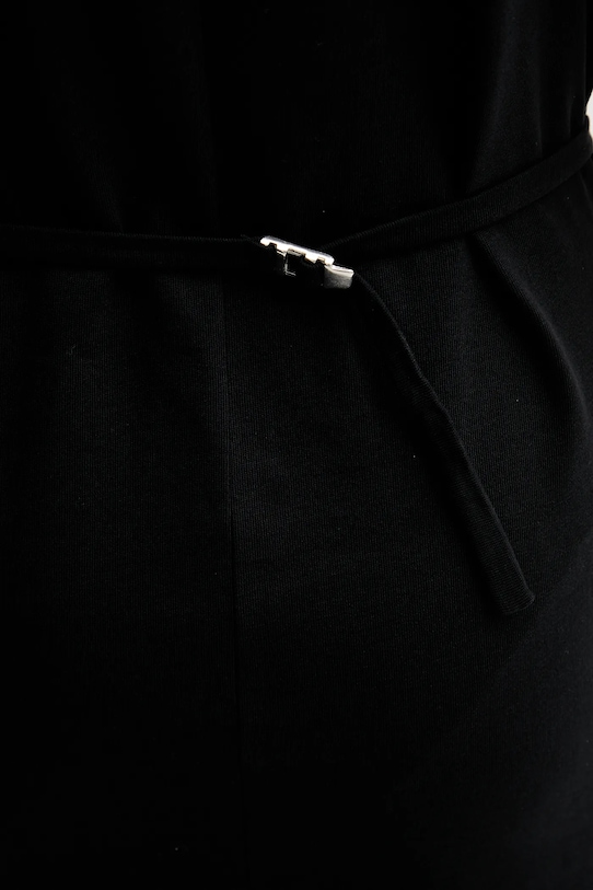 - Модель мини-длины. - Простой дизайн. - Короткий рукав. - Круглый вырез. - Потайная застежка-молния сзади. - Подплечники крепятся с помощью липучки. - Регулировка ширины талии с помощью поясных ремней позволяет индивидуально подогнать изделие по фигуре. - Длина: 88 см. - Размеры указаны для размера: S.