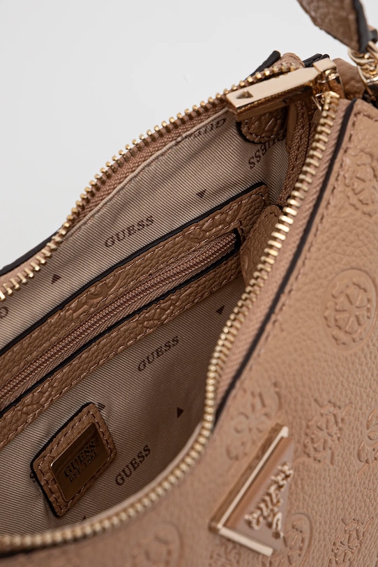 Небольшая сумочка из коллекции Guess. Эта модель на молнии изготовлена из искусственной кожи, которую легко чистить и ухаживать. Лёгкая и удобная, она идеально подходит для повседневной носки. - Отделение на молнии. - Карман на молнии на задней стороне позволяет безопасно хранить телефон или другие мелкие предметы. - Имеет внутренний карман на молнии и отделения для карт. - Модель оснащена металлическими ножками, защищающими дно сумки. - Усиленное дно сумки позволяет изделию долго сохранять форму. - Сумка для ношения в руке или на плече. - Съемный регулируемый ремешок позволяет индивидуально подогнать посадку. - Не подходит для формата А4. - Модель на подкладке. - Входящий в комплект тканевый чехол защищает изделие от пыли. - Количество внутренних карманов на молнии: 1. - Количество слотов для карт: 6. - Глубина: 8 см. - Высота: 17 см. - Ширина у основания: 27 см.