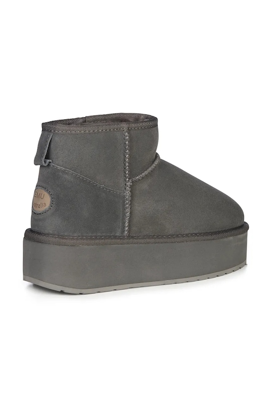 Снегоступы из коллекции Emu Australia. Эти ботинки изготовлены из замши и имеют шерстяную подкладку для дополнительного комфорта и тепла. - Имеет сертификат Woolmark, который выдается изделиям из натуральной чистой шерсти, произведенным на фабриках, отвечающих соответствующим высоким стандартам. - Внутренняя часть обуви выполнена из высококачественной шерсти мериноса (австралийской овцы), что обеспечивает лучшее сохранение тепла и хорошую циркуляцию воздуха. - Круглый, мягкий нос. - Промежуточная подошва из ЭВА обеспечивает легкость и амортизацию. - Слегка усиленный задник. - Модель утеплена натуральной овчиной. - Петля сзади облегчает надевание и снятие обуви. - Платформенная модель. - Water Resistant — технология, повышающая устойчивость обуви к влаге и брызгам воды. - Резиновая подошва прочная и устойчивая к повреждениям. - Водонепроницаемая модель. - Высота платформы: 5 см.
