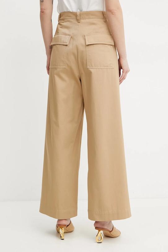 Брюки из коллекции Max Mara Weekend из тонкой, неэластичной ткани. Модель выполнена из исключительно комфортного и дышащего материала, идеально подходящего для теплого времени года. - Брюки свободные в области бедер и ягодиц. - Прямая нога полной длины. - Штанина отутюживается в складку. - Модель с высокой талией, застежкой на молнию и пуговицы. - Два боковых накладных кармана. - Два кармана на ягодицах с застежкой на кнопку. - Ширина талии: 36,5 см. - Ширина бедер: 54 см. - Высота талии: 34 см. - Ширина штанины внизу: 32,5 см. - Ширина штанины: 34,5 см. - Размеры указаны для размера: 36. - Длина внешней части штанины: 107 см.