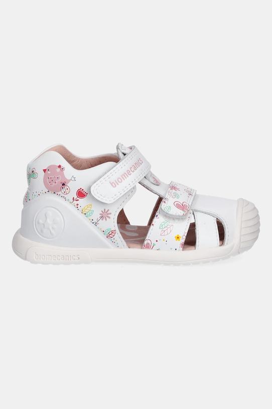 Детские сандалии из коллекции Biomecanics, изготовленные из комбинации натуральной и экокожи, обеспечивают отличную устойчивость стопы и амортизацию. - Они были созданы в сотрудничестве с педиатрами и инженерами Института биомеханики в Валенсии. - Легко надевается и хорошо сидит благодаря застежке-липучке. - Защищенный носок предохраняет пальцы ног от травм. - Они имеют боковой стабилизатор, который контролирует боковое движение стопы. - Они обеспечивают тепловой комфорт благодаря своим испарительным свойствам и перфорированной вставке. - Обеспечивает свободу движений в области голеностопа благодаря U-образному разрезу, который предотвращает давление на ахиллово сухожилие. - Подошва в форме «слоновьей лапки», перекрывающая пятку, обеспечивает устойчивость. - Изготовлено только из натуральных материалов, без никеля и хрома. - Длина вставки: 12 см. - Размеры указаны для размера: 19.