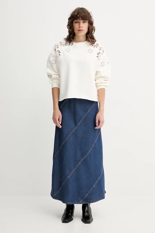 - Стандартная посадка. - Длинный рукав. - Крой рукава со спущенной линией плеча не ограничивает подвижность. - Классический круглый вырез. - Рукава отделаны удобными эластичными манжетами. - Необработанный нижний край. - Длина: 55 см. - Ширина под мышками: 61 см. - Размеры указаны для размера: S.