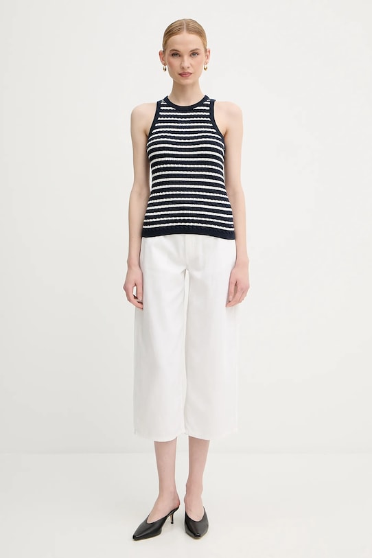 Этот жилет из коллекции Tommy Hilfiger выполнен из эластичного трикотажа средней плотности. Модель выполнена из исключительно комфортного, дышащего хлопкового материала. Модель частично изготовлена из хлопка, полученного в результате регенеративного земледелия, что позволяет фермерам синхронизироваться с природными ритмами. Такой подход к земледелию обеспечивает более длительный отдых и восстановление растений, что приводит к лучшему питанию сельскохозяйственных животных и оздоровлению почвы. - Приталенный крой, подчеркивающий силуэт. - Круглый ребристый вырез. - Нерегулируемые лямки не соскальзывают с плеч, обеспечивая комфорт во время занятий. - Нижний край и проймы отделаны эластичной тесьмой, что обеспечивает лучшее прилегание изделия к телу и облегчает надевание. - Узорчатое трикотажное полотно. - Длина: 60 см. - Ширина под мышками: 40 см. - Размеры указаны для размера: S.