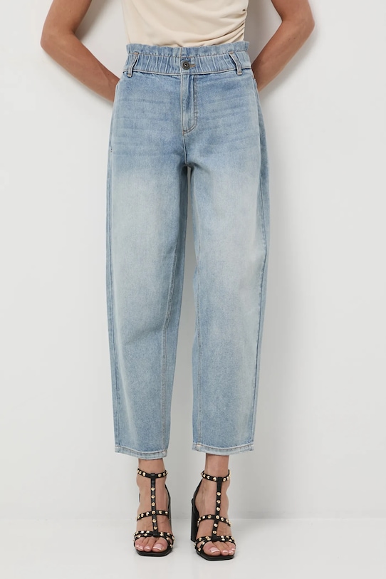 Эти джинсы свободного кроя с высокой талией из коллекции Medicine изготовлены из стираного денима. - Материал с сертификатом OEKO-TEX Standard 100 гарантирует, что текстильные изделия, на которых он нанесен, не содержат вредных и потенциально опасных для человека и окружающей среды веществ. - Свободный крой – эти джинсы имеют свободный крой и широкие штанины, сужающиеся к щиколотке. Более свободный крой не стесняет движений, обеспечивая комфорт и удобство. - Брюки-пакеты. - Модель с высокой талией, застежкой на пуговицы и молнию. - Эластичный пояс. - Накладные карманы. - Контрастная строчка. - Декоративно выстиранный деним. - Ширина талии (до растягивания): 35 см. - Ширина талии (после растяжения): 42 см. - Ширина бедер: 51 см. - Высота талии: 26 см. - Ширина штанины внизу: 18 см. - Длина по внутреннему шву: 69 см. - Размеры указаны для размера: 36.