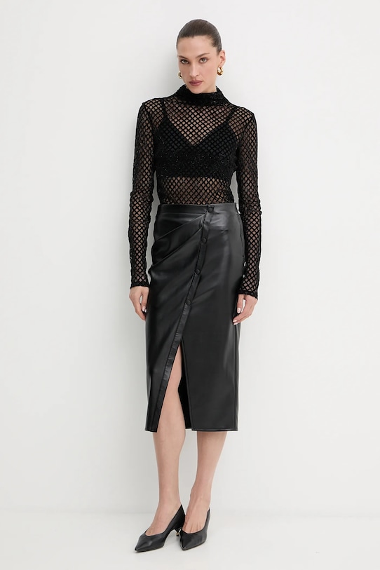 Эта блузка из коллекции Patrizia Pepe выполнена из тонкой, высокоэластичной ткани. Высококачественное изделие, произведено в Италии. - Модель из линейки Go Green, изготовленная из волокон, полученных с использованием экологичных производственных процессов, что снижает их воздействие на окружающую среду. - Приталенный крой, подчеркивающий силуэт. - Модель с водолазкой. - Длинные, прилегающие рукава. - Потайная застежка-молния сзади. - Модель изготовлена из прозрачного материала. - Материал с металлической нитью. - Длина рукава: 68 см. - Длина: 59 см. - Ширина под мышками: 46 см. - Размеры указаны для размера: 36.