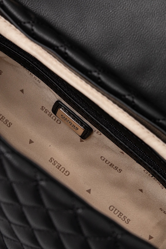 Небольшая сумочка из коллекции Guess. Модель на молнии выполнена из экокожи. В комплект входит тканевый пыльник для защиты изделия от пыли. - Содержит переработанный пластик. - Клапан застегивается на магнит. - Усиленное дно сумки позволяет изделию долго сохранять форму. - Модель оснащена металлическими ножками, защищающими дно сумки. - Имеет внутренний карман на молнии и отделения для карт. - Сумка для ношения в руке или на плече. - Съемный регулируемый ремешок позволяет индивидуально подогнать посадку. - Не подходит для формата А4. - Модель на подкладке. - Входящий в комплект тканевый чехол защищает изделие от пыли. - Количество слотов для карт: 3. - Количество внутренних карманов на молнии: 1. - Минимальная длина ремешка: 68 см. - Максимальная длина ремня: 116 см. - Глубина: 10 см. - Высота: 16,5 см. - Ширина у основания: 22 см.