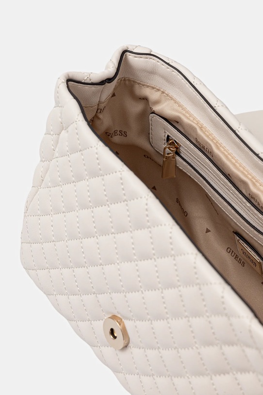 Небольшая сумочка из коллекции Guess. Модель на молнии выполнена из экокожи. В комплект входит тканевый пыльник для защиты изделия от пыли. - Содержит переработанный пластик. - Клапан застегивается на магнит. - Усиленное дно сумки позволяет изделию долго сохранять форму. - Модель оснащена металлическими ножками, защищающими дно сумки. - Имеет внутренний карман на молнии и отделения для карт. - Сумка для ношения в руке или на плече. - Съемный регулируемый ремешок позволяет индивидуально подогнать посадку. - Не подходит для формата А4. - Модель на подкладке. - Входящий в комплект тканевый чехол защищает изделие от пыли. - Количество слотов для карт: 3. - Количество внутренних карманов на молнии: 1. - Минимальная длина ремешка: 68 см. - Максимальная длина ремня: 116 см. - Глубина: 10 см. - Высота: 16,5 см. - Ширина у основания: 22 см.