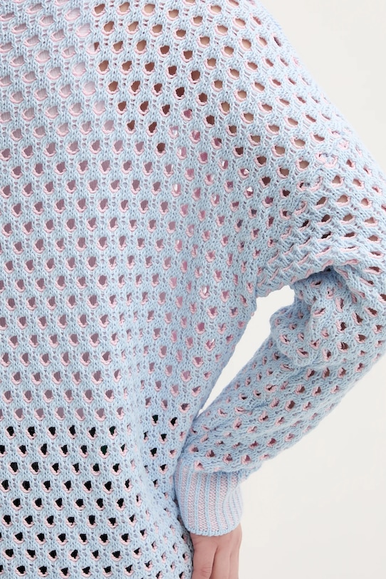 Этот свитер из коллекции United Colors of Benetton выполнен из ажурного трикотажа. Он изготовлен из исключительно комфортного материала с высоким содержанием хлопка. - Модель из линейки Green B, изготовленная с использованием устойчивых производственных процессов, что позволяет снизить воздействие на окружающую среду. - Свободный крой, обеспечивающий полную свободу движений. - Крой рукава со спущенной линией плеча не ограничивает подвижность. - Рукава и нижний край отделаны удобными эластичными манжетами. - Вырез горловины «лодочка». - Модель выполнена из ажурного материала. - Длина: 62 см. - Ширина под мышками: 64 см. - Размеры указаны для размера: S.