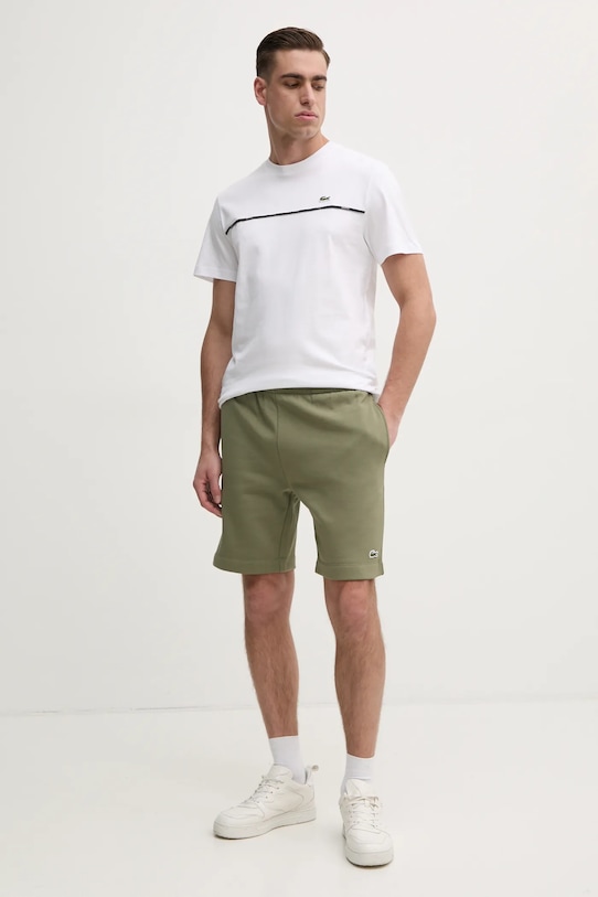 Шорты из коллекции Lacoste. Изготовлены из тонкой, слегка тянущейся ткани. - Это изделие изготовлено из переработанного полиэстера. Этот продукт частично изготовлен из сертифицированного органического хлопка, выращенного и собранного с растений, не содержащих ГМО, без использования удобрений и пестицидов. Процесс производства органического хлопка более экологичен, а изделия из него полезнее для здоровья. - Обычная посадка. - Обхват талии обычный. - Эластичный пояс и дополнительная внутренняя регулировка ширины с помощью шнурков для предотвращения сползания во время движения. - Прямая нога. - Два боковых накладных кармана. - Гладкая трикотажная ткань. - Ширина талии: 38 см. - Ширина бедер: 53 см. - Высота талии: 30 см. - Ширина штанины внизу: 26 см. - Ширина штанины: 29,5 см. - Длина штанины: 49 см. - Размеры указаны для размера: M.