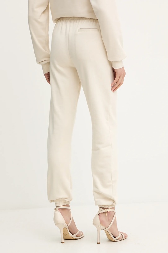 Эти спортивные брюки из коллекции Silvian Heach изготовлены из тонкой эластичной ткани. Они мягкие и приятные на ощупь. - Брюки свободные в области бедер и ягодиц. - Ножки отделаны удобными эластичными манжетами. - Высокая талия с резинкой предотвращает скольжение во время движения. - Регулировка ширины талии с помощью шнурков. - Два боковых накладных кармана. - Накладной карман сзади, без застежки. - Ширина талии: 32 см. - Ширина бедер: 53 см. - Высота талии: 30 см. - Ширина штанины внизу: 12 см. - Ширина штанины: 28 см. - Длина внешней части штанины: 104 см. - Размеры указаны для размера: S.