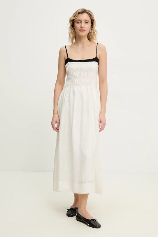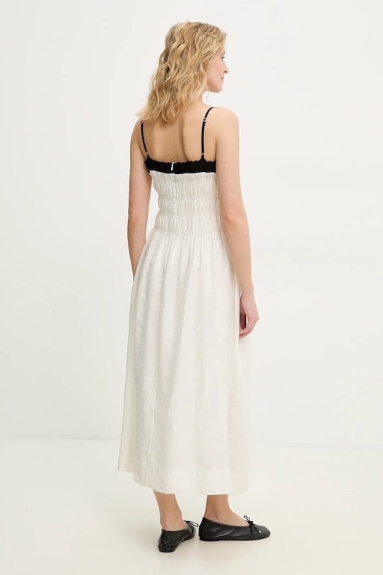 Это платье из коллекции Answear.LAB выполнено из гладкой ткани. Модель выполнена из дышащего материала с высоким содержанием лиоцелла. - Частично изготовлен из лиоцелла — экологичного и нетоксичного материала. Этот материал мягкий и дышащий, идеально подходит для чувствительной кожи, склонной к раздражению. - Расклешенный крой. - Дополнительный слой материала в виде подкладки. - Классический круглый вырез. - Регулируемые бретели обеспечивают оптимальную поддержку груди и позволяют индивидуально подогнать по фигуре, не раздражая кожу на плечах. - Эластичная вставка обеспечивает индивидуальную посадку. - Потайная застежка-молния сзади. - Два боковых накладных кармана. - Модель с декоративными оборками. - Тонкая, неэластичная ткань. - Длина: 130 см. - Ширина под мышками: 40 см. - Ширина талии: 32 см. - Размеры указаны для размера: S.