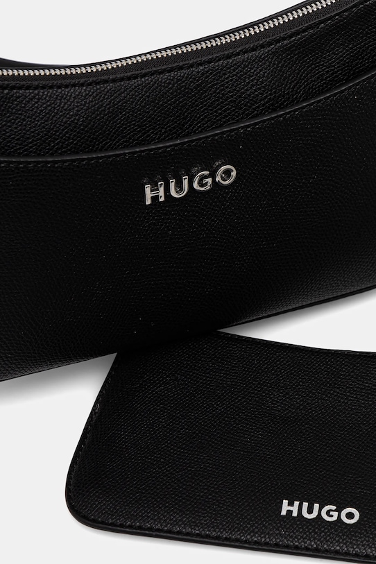 Небольшая сумочка из коллекции HUGO. Модель на молнии изготовлена из искусственной кожи, которую легко чистить и ухаживать. В комплект входит сумка меньшего размера. - Изделие содержит переработанные волокнистые материалы. - Отделение на молнии. - Накладной карман спереди позволяет легко и безопасно хранить телефон или другие мелкие предметы. - Модель не имеет внутренних карманов. - Внутреннее отделение для карт. - Сумка для ношения через плечо. - Несъемный регулируемый ремешок позволяет индивидуально подогнать посадку. - Усиленное дно сумки позволяет изделию долго сохранять форму. - Сумка меньшего размера с подкладкой. Эта модель без внутренних карманов и с длинной ручкой. - Не подходит для формата А4. - Модель на подкладке. - Количество слотов для карт: 1. - Глубина: 6,5 см. - Высота: 14,5 см. - Ширина у основания: 25,5 см.