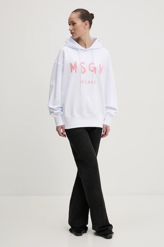 Эта толстовка с капюшоном из коллекции MSGM выполнена из трикотажного полотна с принтом. Она изготовлена из исключительно комфортного хлопкового материала. - Свободный крой, обеспечивающий полную свободу движений. - Крой рукава со спущенной линией плеча не ограничивает подвижность. - Капюшон с завязками обеспечивает дополнительное тепло и защиту при необходимости. - Рукава и низ изделия отделаны манжетами для защиты от неблагоприятных погодных условий. - Тонкий, эластичный трикотаж. - Длина рукава (от капюшона): 76 см. - Длина: 67 см. - Ширина под мышками: 63 см. - Размеры указаны для размера: S.
