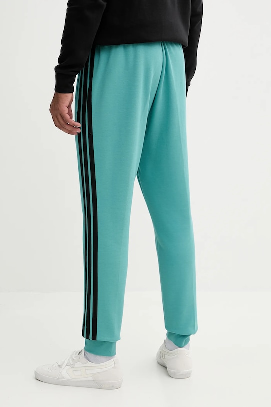 Эти спортивные штаны adidas изготовлены из тонкого, слегка эластичного трикотажного полотна, мягкого и приятного на ощупь. - Брюки слегка приталенные на бедрах. - Крой с зауженными брючинами, не стесняющими движений. - Вшитая в паховую область ластовица повышает комфорт и подвижность. - Эластичный пояс и дополнительная регулировка ширины с помощью шнурков для предотвращения сползания во время движения. - Два боковых накладных кармана. - Ножки отделаны удобными эластичными манжетами. - Мягкая внутренняя отделка обеспечивает высокий комфорт использования и оптимальный тепловой комфорт. - Логотип бренда вышит спереди. - Ширина талии: 41 см. - Ширина бедер: 58 см. - Высота талии: 36 см. - Ширина штанины внизу: 17 см. - Ширина штанины: 32 см. - Длина внешней части штанины: 105,5 см. - Размеры указаны для размера: M.