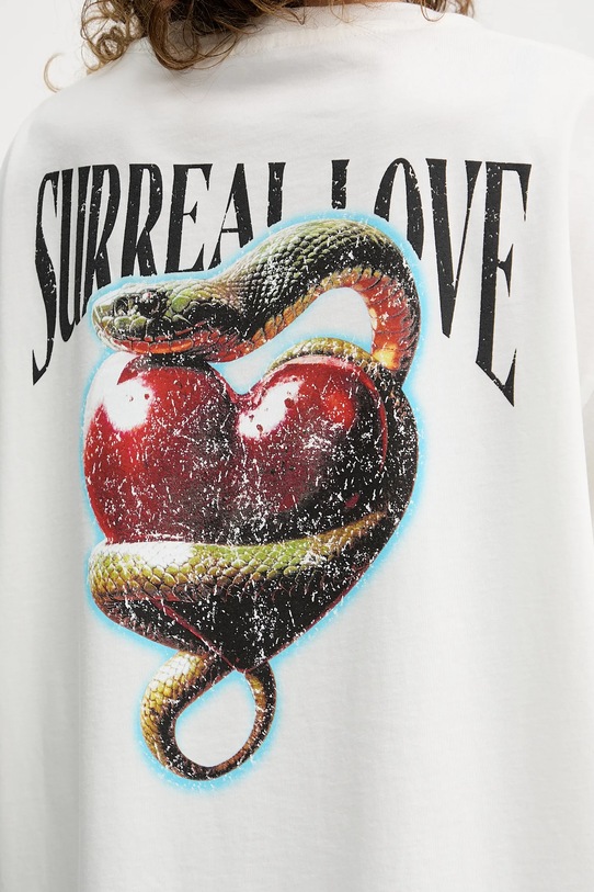 - Свободный крой, обеспечивающий полную свободу движений. - Круглый ребристый вырез. - Короткий рукав. - Крой рукава со спущенной линией плеча не ограничивает подвижность. - Модель с принтом на груди и спине. - Длина: 75 см. - Ширина под мышками: 64 см. - Размеры указаны для размера: S.