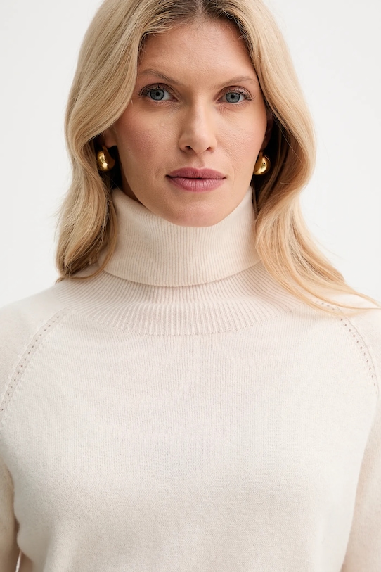 Этот свитер из коллекции Fracomina выполнен из гладкого, эластичного трикотажа. Высокие терморегулирующие свойства шерсти позволяют согреться в холод и охладиться в жару. - Свободный крой, обеспечивающий полную свободу движений. - Модель с высоким воротом. - Рукава реглан благодаря своей конструкции обеспечивают большую свободу движений. - Нижний край отделан эластичной резинкой, благодаря чему изделие лучше прилегает к телу и удобно в носке. - Тонкий, эластичный трикотаж. - Длина рукава (от горловины): 75 см. - Длина: 66 см. - Ширина под мышками: 54 см. - Размеры указаны для размера: S.