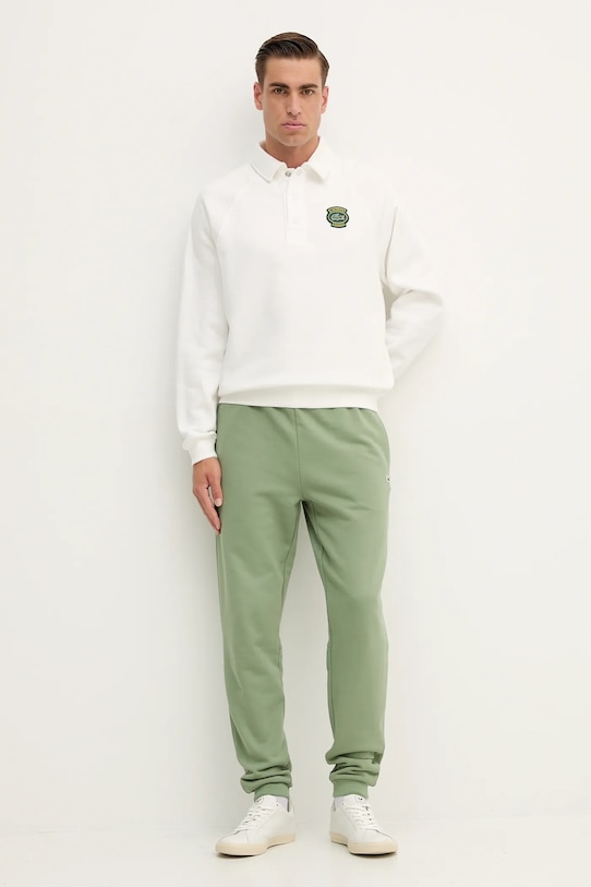 Эти спортивные брюки из коллекции Lacoste изготовлены из тонкой эластичной ткани, в состав которой входит дышащий хлопок. «Создай более элегантный мир» — инициатива Lacoste, сочетающая моду и экологическую ответственность. Она пропагандирует устойчивый образ жизни и заботу об окружающей среде, побуждая людей делать осознанный выбор. - Брюки свободные в области бедер и ягодиц. - Эластичный пояс и дополнительная внутренняя регулировка ширины с помощью шнурков для предотвращения сползания во время движения. - Ножки отделаны удобными эластичными манжетами. - Два боковых накладных кармана. - Нашивка с логотипом спереди. - Ширина талии: 40 см. - Ширина бедер: 52 см. - Высота талии: 33 см. - Ширина штанины внизу: 14,5 см. - Ширина штанины: 31 см. - Длина внешней части штанины: 108 см. - Размеры указаны для размера: M.